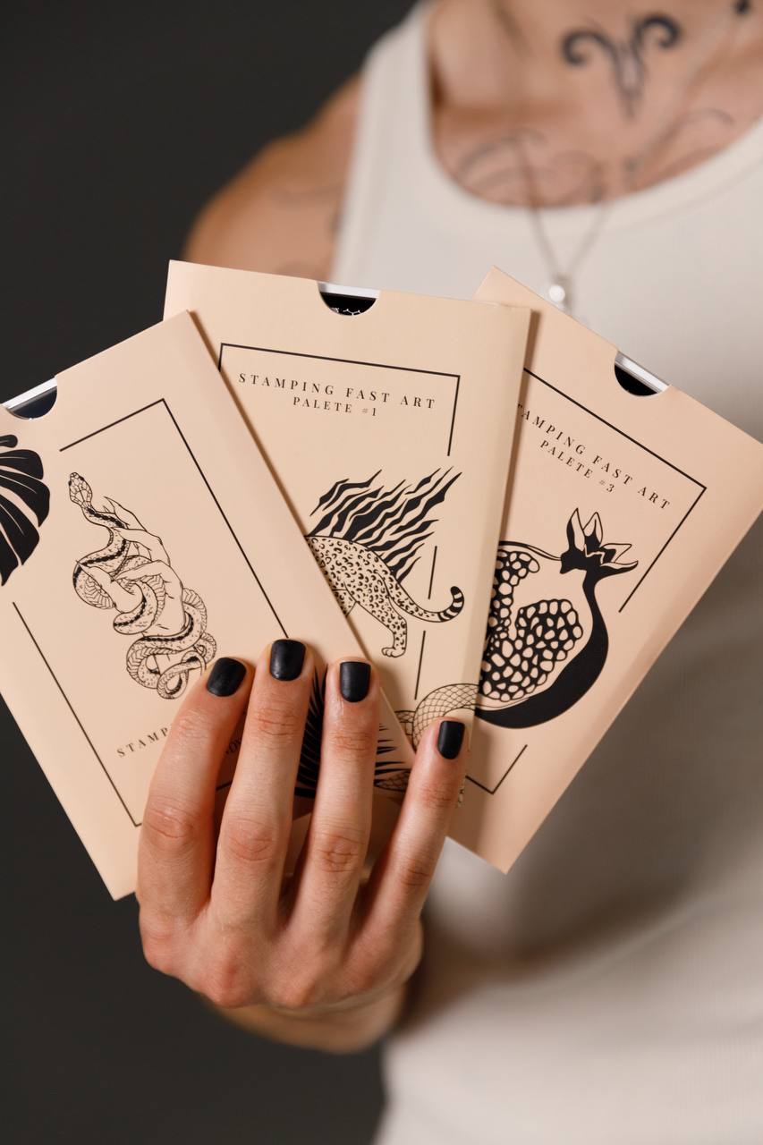 Плоча 1: Животински принт на цяла маникюрна плоча, предназначен за къси и средни нокти; за дълги нокти ще е необходимо допълнително приложение.