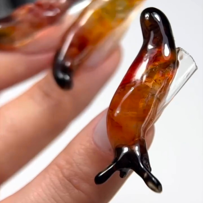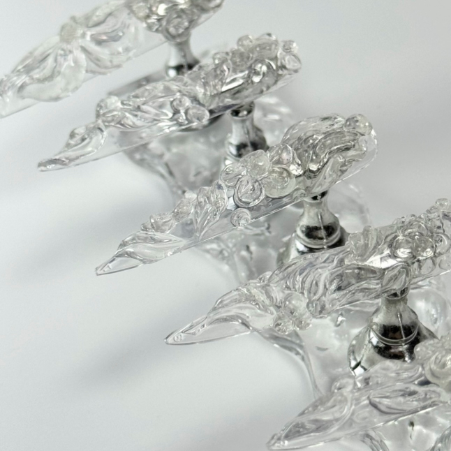 5.2. Поставете декоративния елемент върху лепкавия слой на покритието. Полимеризирайте в UV/LED лампа за 120/60 секунди.