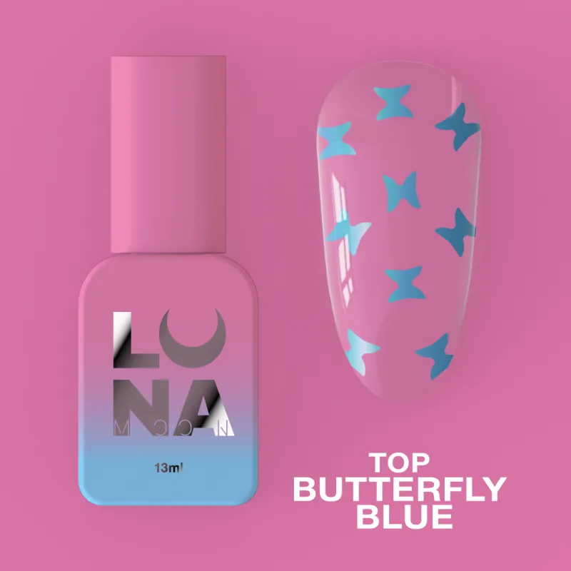 Top Butterfly Blue  е топ лак без изтриване с декоративни елементи, който допълва красиво всеки цвят на ноктите. Добавя деликатен и уникален щрих към вашия маникюр.