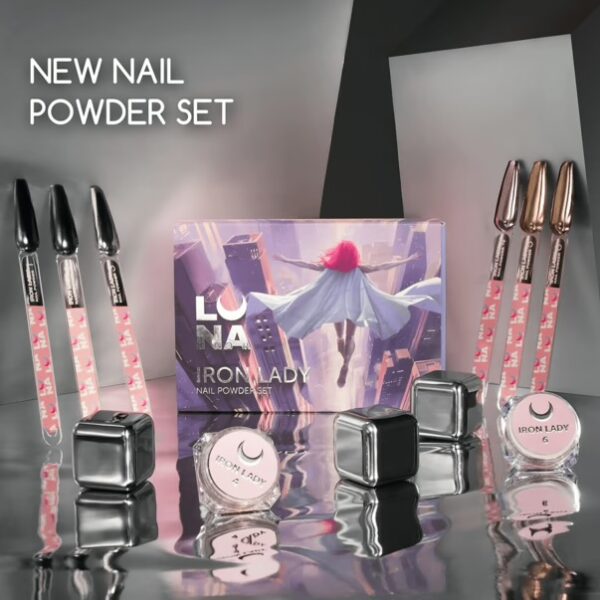 Комплектът пудри за нокти IRON LADY (колекция от 6 части) са висококачествени метални пудри, които се нанасят равномерно и лесно, осигурявайки безупречно покритие без празнини или неравности.