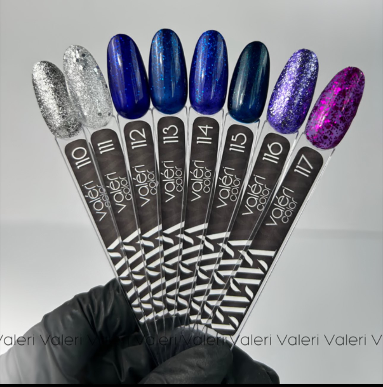Гел лаковете на Valeri са висококачествени, пигментирани гел лакове, които се нанасят гладко и втвърдяват под лампа. С правилната техника на нанасяне повечето цветове могат да бъдат покрити в един слой. Имат отлична консистенция със средна плътност, която не им позволява да се стичат върху кутикулата и страничните стени. Силно пигментирани, те не се разпръскват и се разпределят равномерно по нокътната плочка. Предлага се в рентабилни обеми, позволяващи разнообразна цветова палитра. Една бутилка гел лак е достатъчна за 18-20 нанасяния.