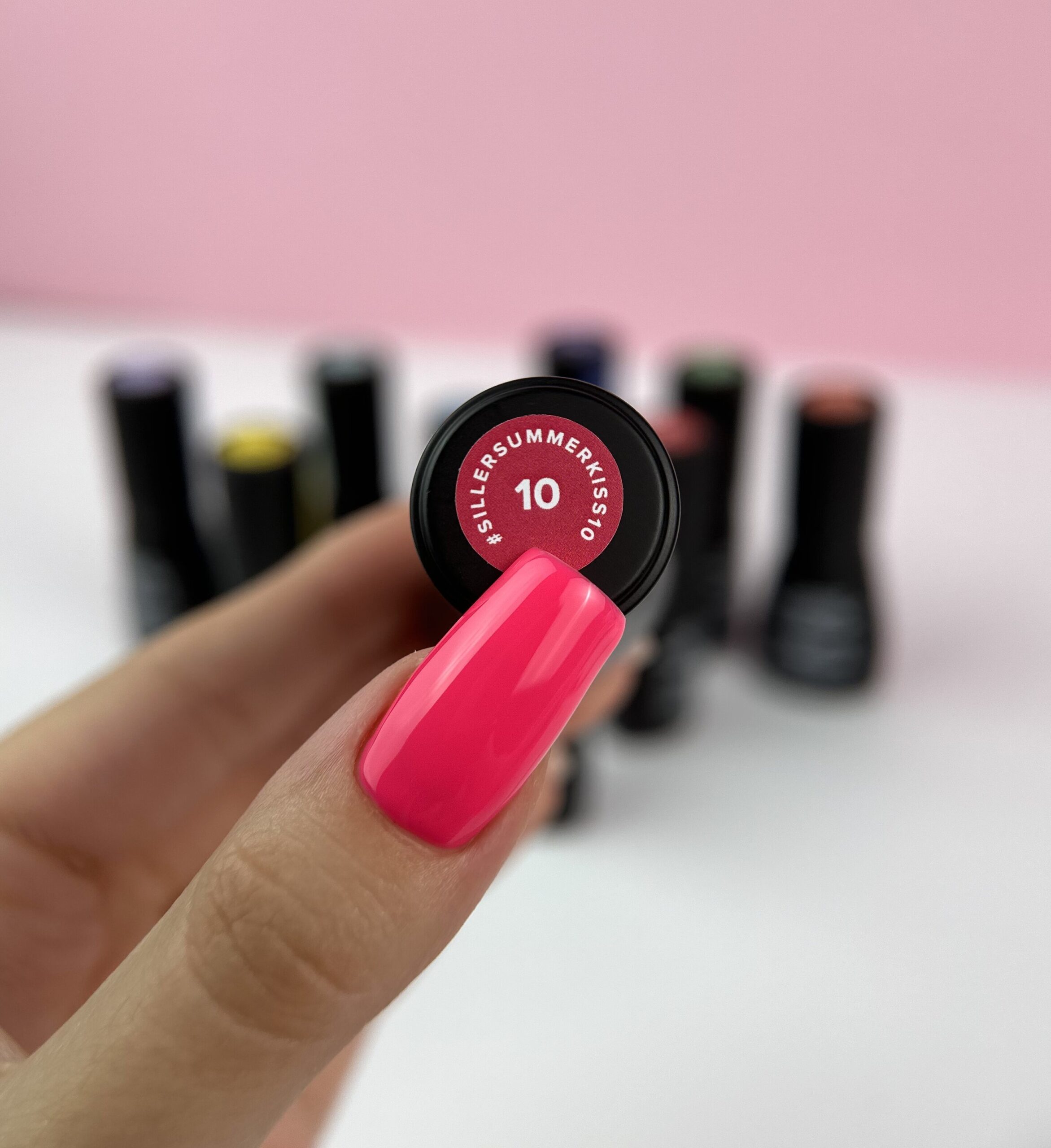 - Нанесете тънък слой Siller Summer Kiss. Полимеризирайте в UV лампа за 2 мин или в LED лампа за 30 секунди.