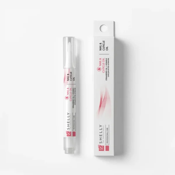 Добре поддържаните кожички са една от стъпките към безупречен маникюр. Shelly™ Nail and Cuticle Oil значително ще улесни грижата за кутикулата и нокътната плочка, поддържайки спретнатия ѝ вид. Разработен на базата на комплекс от ценни масла: макадамия, гроздови семки, конопено масло и масло от слънчогледови семки, продуктът има омекотяващ и подхранващ ефект и укрепва ноктите. Екстрактът от ягода, който е част от продукта, има антибактериални свойства, спасява сухата и дехидратирана кожа, подхранва я с витамини, насища с влага и подобрява външния ѝ вид. Витамин Е предотвратява напуквания и разслояване, възстановява увредените и слаби нокти и ускорява растежа им. Продуктът стимулира производството на колаген и еластин, които увеличават плътността на структурите на нокътната плочка. Той насища клетките на епидермиса с витамини и хранителни вещества и възстановява кожата, а благодарение на аромата на сочни ягоди е два пъти по-приятен за употреба. За максимален ефект се препоръчва ежедневна употреба на маслото.