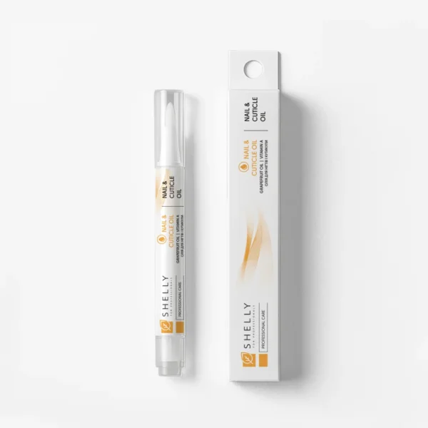 Добре поддържаните кожички са една от стъпките към безупречен маникюр. Shelly™ масло за нокти и кожички значително ще улесни грижата за кутикулата и нокътната плочка, поддържайки спретнатия ѝ вид. Активната формула на продукта е способна да проникне дълбоко в кутикулата, да я омекоти, което има благоприятен ефект върху процедурата по маникюр. Комбинацията от ценни масла в продукта: бадемово, жожоба, масло от пшеничен зародиш, масло от слънчогледово семе, има цялостен ефект върху състоянието на кожата и нокътната плочка, подхранва и поддържа оптимално ниво на влага за дълго време, правейки кожата мека, а ноктите здрави и силни. Екстрактът от грейпфрут увеличава регенерацията на увредените епидермални клетки, има противовъзпалителен, антибактериален ефект. Витамин А възвръща еластичността на кожата и нокътната плочка, справя се перфектно с проблемите на дехидратация и сухота. Приятният цитрусов аромат на продукта ще направи процедурата по грижа за ръцете по-приятна. За максимален ефект се препоръчва ежедневна употреба на маслото.