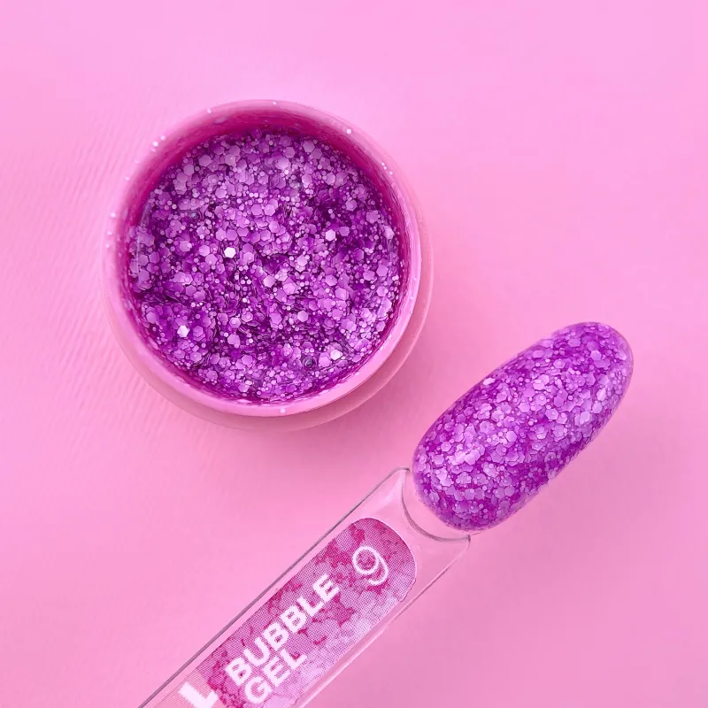 Течни глитери със средна гъстота, наситен цвят и блестящи частици с различна форма и размер, изработени от мек материал. Създадени са за дизайн и не могат да се използват за удължаване и укрепване.