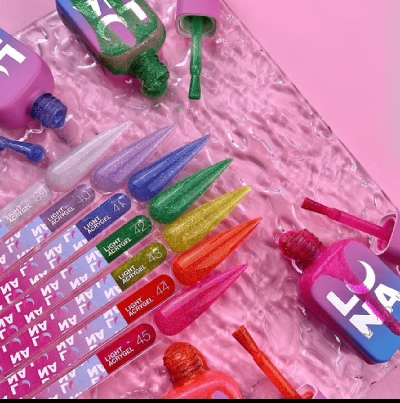 Lunamoon Liquid Light Acrygel е иновативен материал за укрепване, изравняване и удължаване на ноктите.  Той е хибрид от полигел и база, състоящ се от  60–80% акрилен съполимер  и  20–30% HEMA . Може напълно да замени базовия слой при моделиране на ноктите.