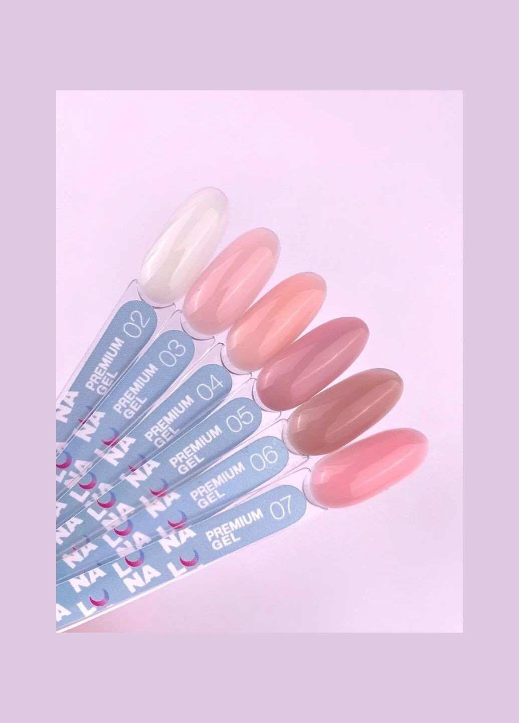 Premium Gels се полимеризират в лампа и благодарение на своята здравина позволяват удължаване на нокътната плочка. Безкиселинен състав. Устойчиви на механични повреди. Консистенцията им е средно гъста. Класически цветове.